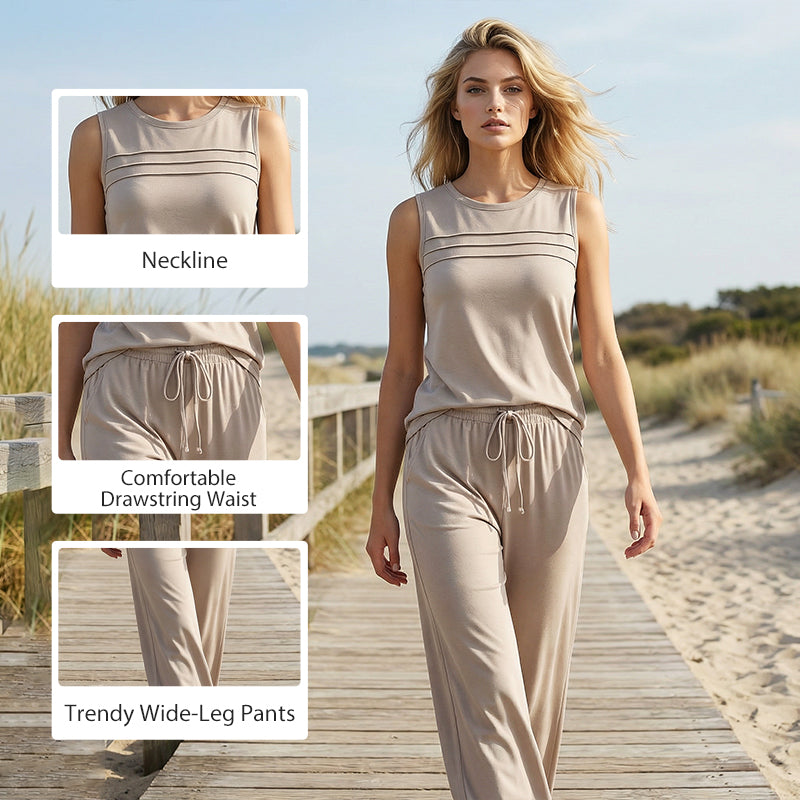 VERSATILE TWO-PIECE SET - Enjoy multiple styling options. Wear the tank top and wide-leg pants together for a coordinated look or mix and match them with other wardrobe staples for endless outfit possibilities.