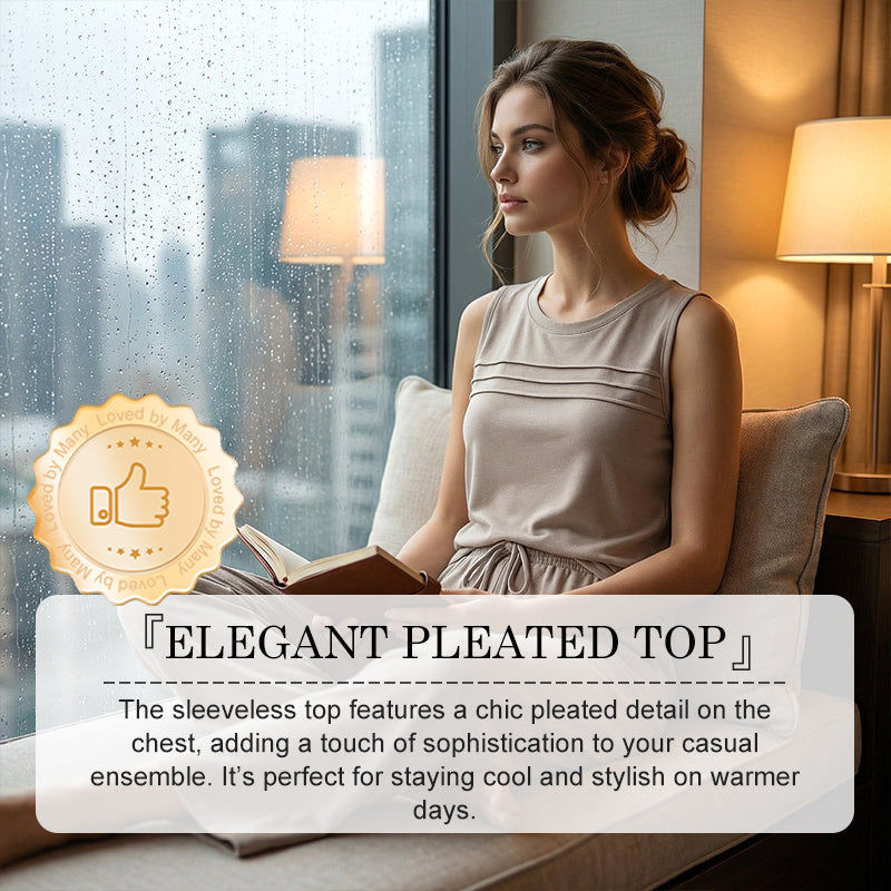 ELEGANT PLEATED TOP - The sleeveless top features a chic pleated detail on the chest, adding a touch of sophistication to your casual ensemble. It’s perfect for staying cool and stylish on warmer days.