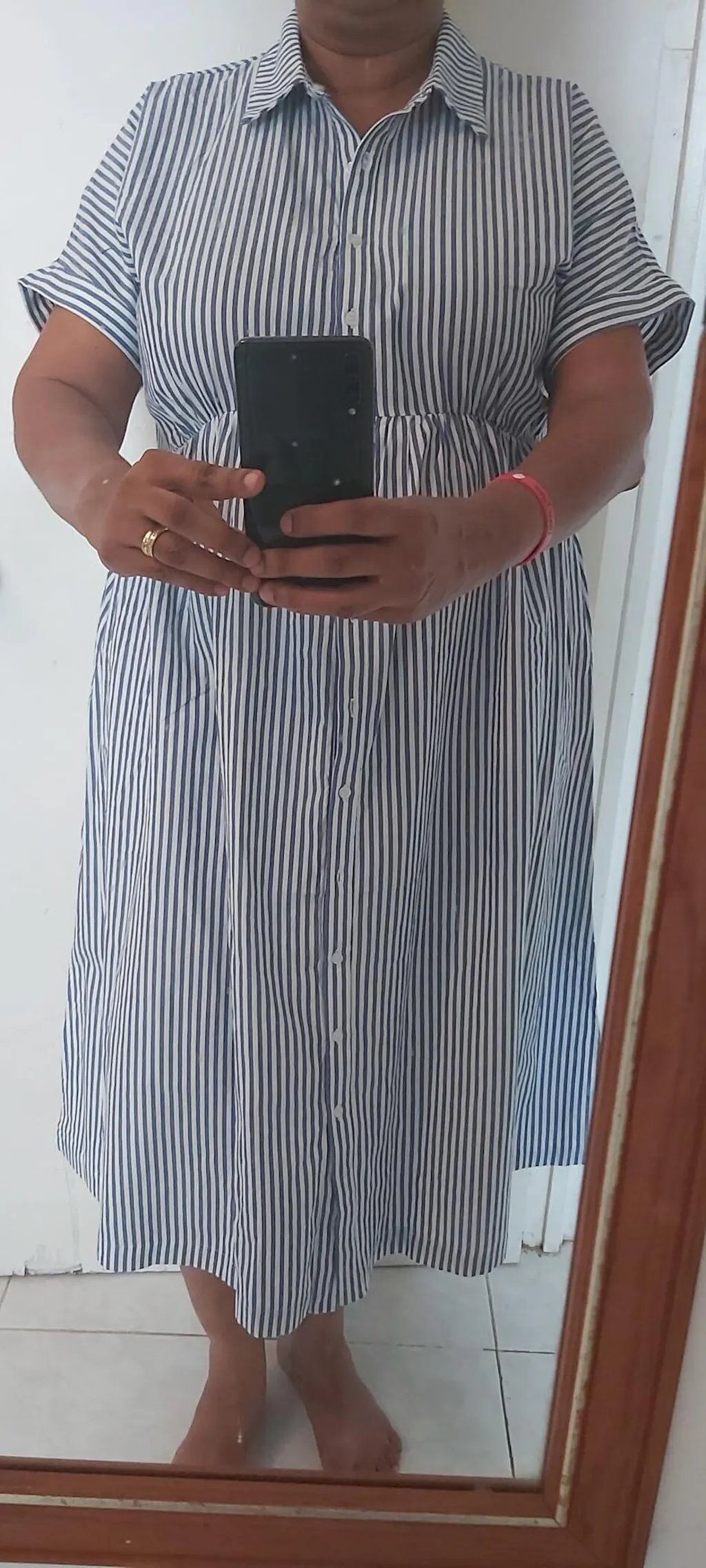 🌟 Elevate your elegance with this striped button-down dress, featuring handy pockets for your essentials, keeping you stylish all day 👗
